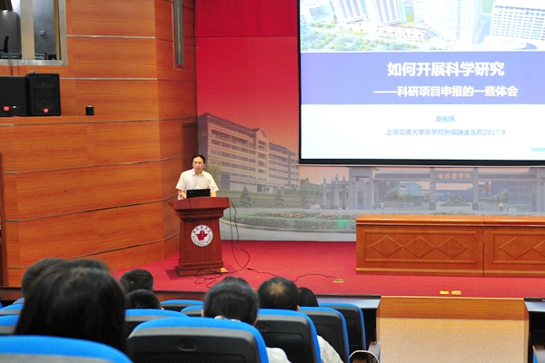会上,上海交通大学医学院附属瑞金医院二级教授夏振炜做了题为《如何开展科学研究——科研项目申报的一些体会》的专题讲座,介绍了瑞金医院重点学科建设的基本情况,从科研管理人员和评审专家的角度谈了科研项目申报的流程和注意事项,并分享了个人科研项目申报的经验和体会。