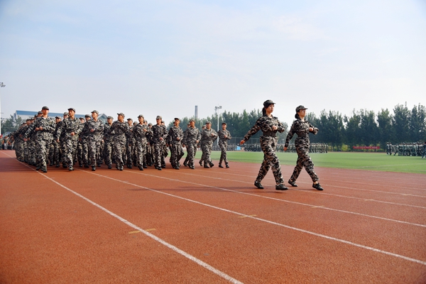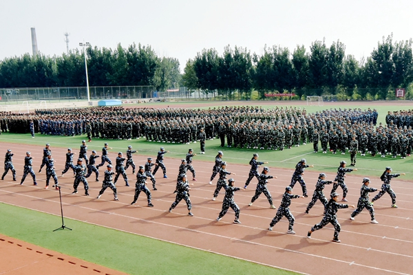 军训工作领导小组全体成员,全体教官,2017级辅导员、班主任及全体参训学生参加大会。