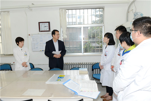 为更好地做好本科教学审核评估工作,近日,学校附属医院组织开展了校内预评估检查。副校长、医院党委书记葛国文、院长胡温庭带队,由院领导、督导组专家成员、优秀教师代表、教科部管理人员组成专家组,依照审核评估要求,对全院临床、医技、职能部门进行了全面督导检查。