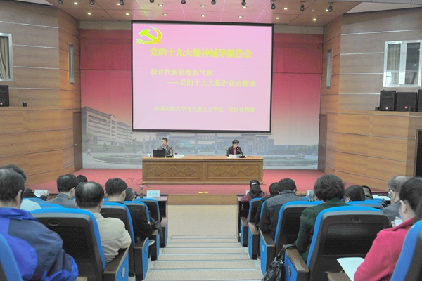 校领导、全体处级干部、党支部书记、机关党委全体党员、学生辅导员和马克思主义学院教师参加了此次报告会。