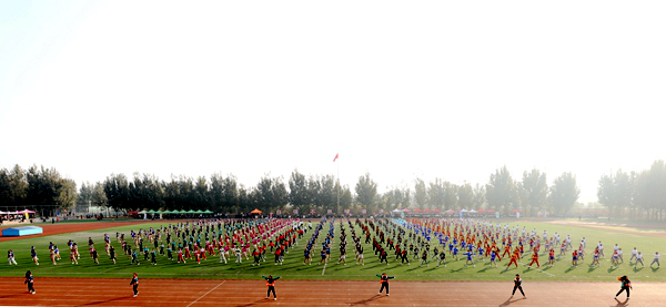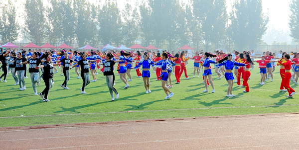 校长管英俊宣布阳光健身活动正式开始。校领导与师生一起参与了“庆祝十九大,环智和湖健身跑”,并观看了健美操比赛。