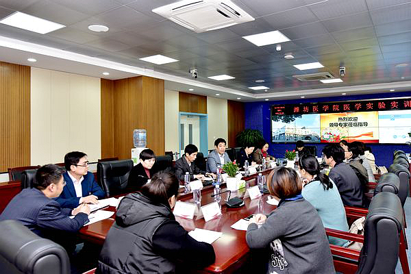 11月7日上午,山东中医药大学实验室管理处齐冬梅处长等一行8人来beat365医学实验实训中心就医学实验实训平台的格局设计、运行与管理模式、临床基本技能教学培训的体系设置等问题进行调研学习。副校长井西学接见了来访客人,与客人进行了深入交流并陪同参观了医学实验实训中心。