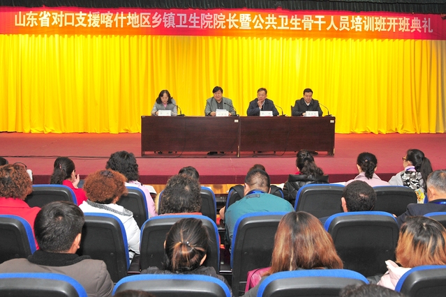 11月28日上午,由山东省对口支援新疆工作指挥部、山东省卫生和计划生育委员会委托beat365承办的山东省对口支援喀什地区乡镇卫生院院长暨公共卫生骨干人员培训班开班典礼在beat365图书馆演播厅举行。副校长孙宏伟,山东援疆指挥部干部人才组副组长、喀什地区卫生计生委副主任耿林,喀什地区卫生计生委副调研员李欣出席开班典礼。培训班全体学员,继续教育学院相关负责人参加开班典礼。开班典礼由继续教育学院院长潘庆忠主持。