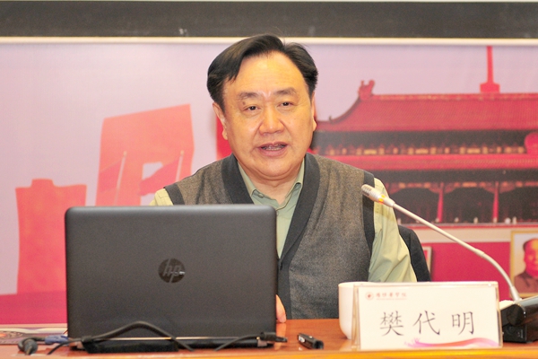 12月18日上午,中国工程院副院长(党组成员)、中国工程院院士、美国国家医学院外籍院士、博士生导师樊代明教授做客潍坊医学院院士讲堂,以《医学的系统论与整合观》为题作了精彩的报告。校党委书记李欣章主持报告会。校领导,各部门、院(系)全体处级干部,教授代表,各院(系)教师和学生代表300余人参加报告会。