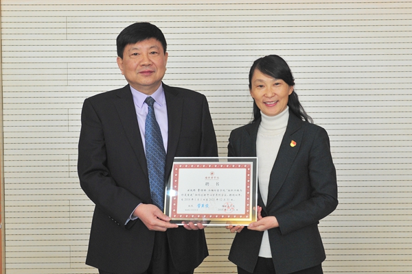 管英俊为三位专家颁发了聘书,并代表学校与专家签署了合同书。