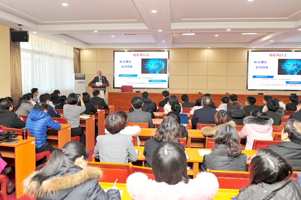 聘任仪式后,中国工程院院士戴尅戎做客beat365院士讲堂,以《医学提升的下一个风口》为题作了精彩的学术报告。他结合当下流行的风口元素,站在创新发展的角度描绘了数字医学领域的美好未来,用一个个生动的案例深入浅出地介绍了3D打印这一在数字化工业革命中最具有代表性技术的基本原理、研究现状及发展趋势,并深入探讨了将3D打印技术引入医学领域中进行人工器官制造的优势及应用前景。校领导、机关党委处科级干部、各院(系)教师和学生代表100余人聆听了报告。