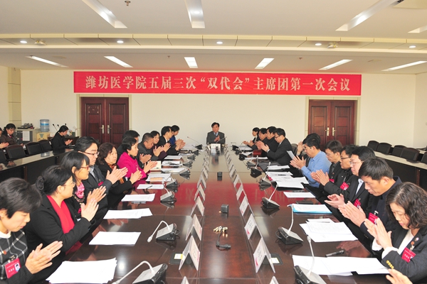 1月11日下午,beat365第五届教职工代表大会暨工会会员代表大会第三次会议(简称五届三次“双代会”)主席团第一次会议在办公楼三楼会议室召开。大会主席团全体成员参加会议。校党委副书记张潍华主持会议。
