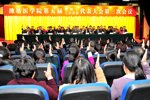 在第二次全体会议上,代表们举手表决通过了关于校长工作报告的决议、关于学校财务工作报告的决议、关于工会工作报告的决议、关于工会经费审查报告的决议、关于浮烟山校区修建性规划(调整)方案的决议。