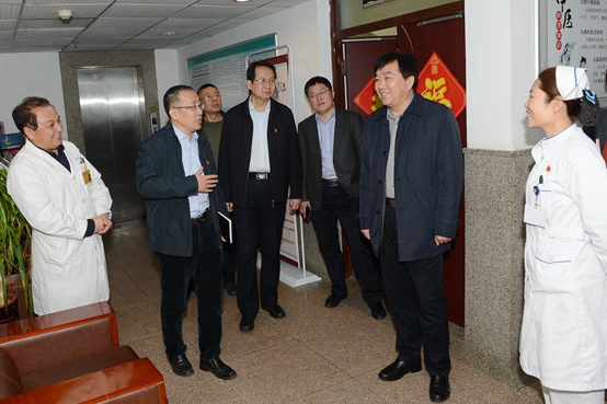 李欣章与医院领导班子成员进行了深入交流,对医院新领导班子上任以来做出的成绩给予了充分肯定,并从医院发展规划、条件建设、人才队伍建设、教学科研等方面的下一步发展提出了具体要求。随后,李欣章深入临床科室进行了实地查看,与临床一线医护人员进行了亲切交谈。