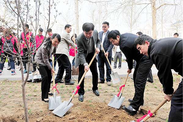 随后,校领导及陈局长同园林管理处干部职工、学校职工代表及学生志愿者共100余人一起挖树坑、栽植树苗。