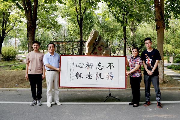 临床医学院党委书记董铁军、党委副书记、院长梁淑娟为纪念石“扬帆”揭幕,学生党员为学院赠送了书法作品《不忘初心,扬帆远航》,党员代表于颖发言,表达了自己对母校党组织培养的感激之情及扬帆远航踏上建功立业新征程的决心。