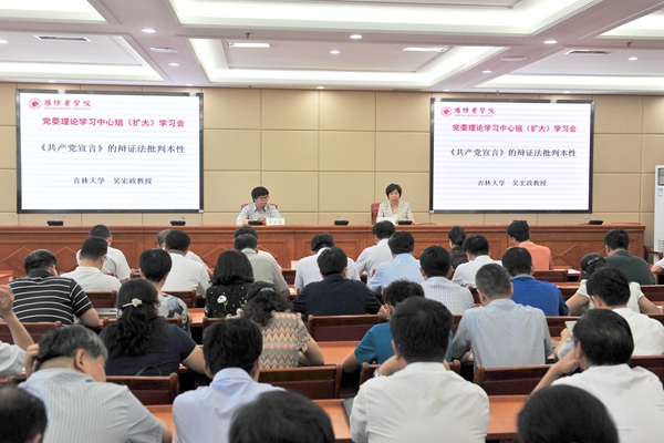 为全面落实全省高校基层党建工作重点任务推进会精神,组织开展好庆祝建党97周年主题党日活动,6月28日上午,学校召开党委理论学习中心组(扩大)学习会,邀请吉林大学马克思主义学院副院长、博士生导师吴宏政教授作辅导报告。校领导李欣章、张潍华、田艳玲出席会议。学习会由校党委副书记张潍华主持。
