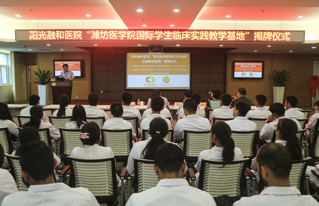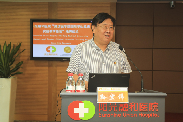 仪式上,孙宏伟介绍了beat365、留学生教育发展情况和开放办学战略,前期阳光融和医院圆满完成了留学生临床见习任务,国际学生临床实践教学基地的建立将为beat365留学生临床实践教学提供良好的育人环境,将进一步促进双方医教研深度协同。