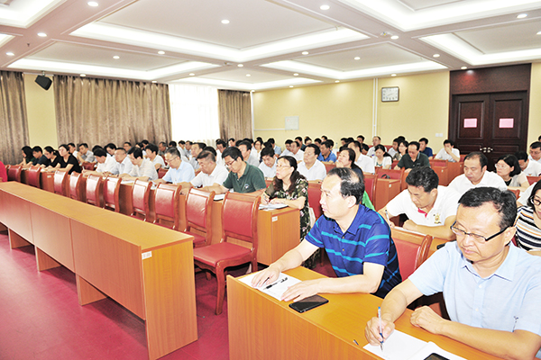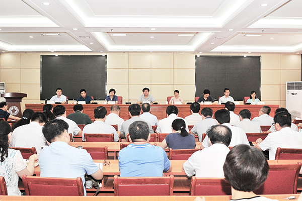 7月19日上午,学校在办公楼四楼会议室召开工作会议,总结2018年上半年工作,部署暑假前后重点工作。校领导李欣章、管英俊、张潍华、朱军、井西学、葛国文、刘军、田艳玲出席会议。会议由校党委书记李欣章主持。
