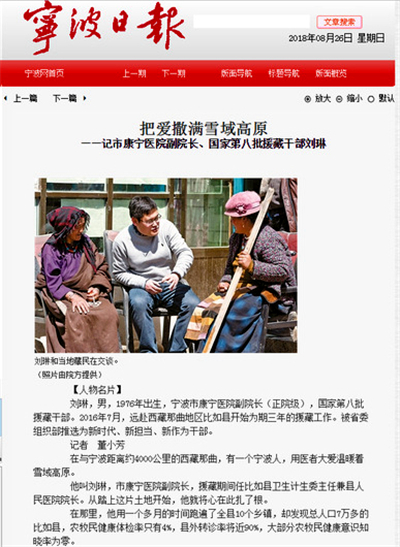 【浙江日报】 雪域高原的“健康使者” 记那曲市比如县卫计委主任、县人民医院院长刘琳
