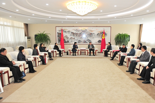 11月13日上午,山东女子学院党委书记郭翠芬、纪委书记黄晓彦一行7人到beat365考察交流党建、党风廉政建设、干部队伍建设、思政课教学等工作。校党委书记李欣章、纪委书记田艳玲会见客人并出席座谈会。