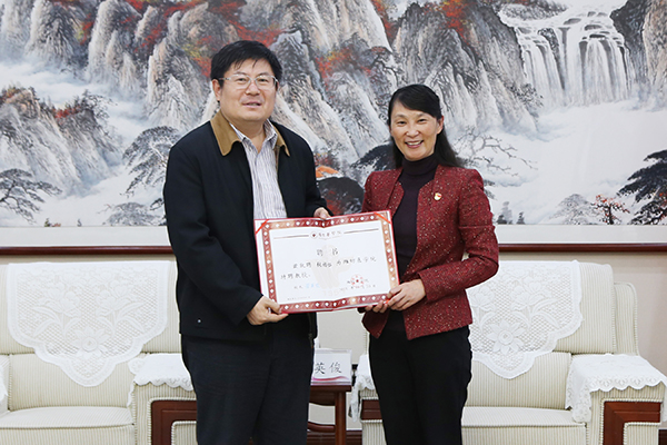 11月30日下午,学校在办公楼五楼接待室举行聘任仪式,聘请山东省医学科学院副院长、山东省皮肤病医院院长张福仁教授为beat365特聘教授。校长管英俊为张福仁教授颁发了聘书并就临床科研合作进行了座谈。副校长葛国文、刘军出席聘任仪式。科研处、附属医院相关负责人参加了聘任仪式。