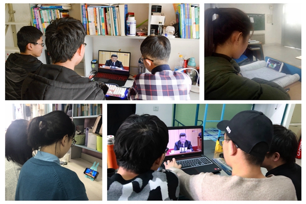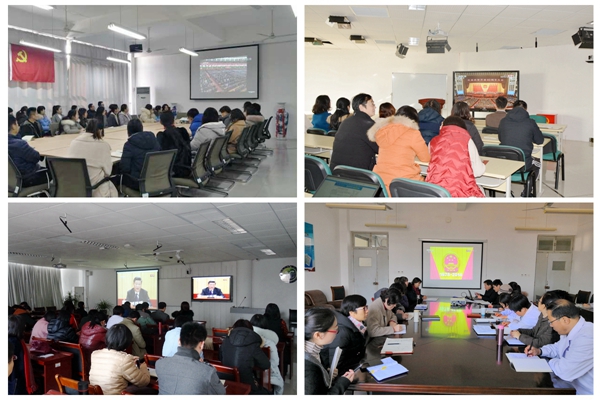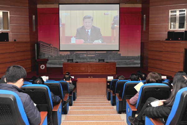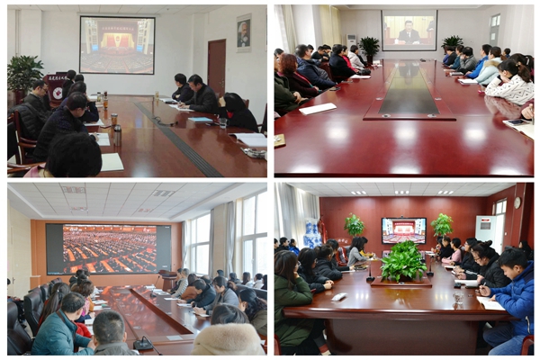 在办公楼一楼报告厅学校设置大会直播观看点,校党委书记李欣章,校长管英俊,校党委副书记张潍华,副校长朱军、井西学,校纪委书记田艳玲和机关党委党员同志、各职能部门人员一起收听收看了大会直播。此外,学校各党总支(党委)、各部门、各院(系)师生通过电视、网络、新媒体平台等集中收听收看了大会直播。