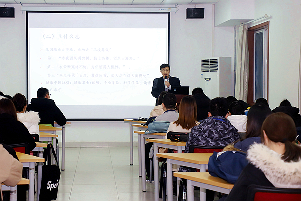 刘军分析了新时代大学生的现状,指明了当代大学生应如何度过大学生活,如何认真学习。在立志方面,教导学生“人生须立志,立志当高远”,从为什么要立志、立什么志、立志之后还需笃志三个方面阐述了立志的重要性,鼓励学生们努力学习,脚踏实地,将国家前途与个人命运紧紧联系在一起;在立德方面,从微观、中观、宏观三个角度阐释了什么是德、如何立德,强调“做事先做人,立业先立德”,提出了当代大学生加强自我修养的三步曲:诚实守信、懂得感恩、善于合作;在立学方面,从为什么学、学什么和怎么学三个角度介绍了立学的重要性,教育学生勤学、乐学、好学、善学、博学,打牢专业知识基础,培养创新思维,锻炼综合能力,为成为德智体美劳全面发展的社会主义建设者和接班人打好基础。