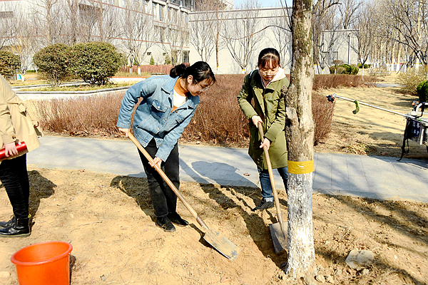 3月11日,公共卫生与管理学院管理与法学专业学生党支部于浮烟山校区致远路旁开展绿地认养主题党日活动。