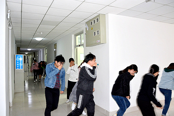 随后,工作人员打开报警装置,广大师生沿着规定逃生路线有序疏散,快速逃离至楼外安全区域,整个演练过程井然有序,达到预期效果。