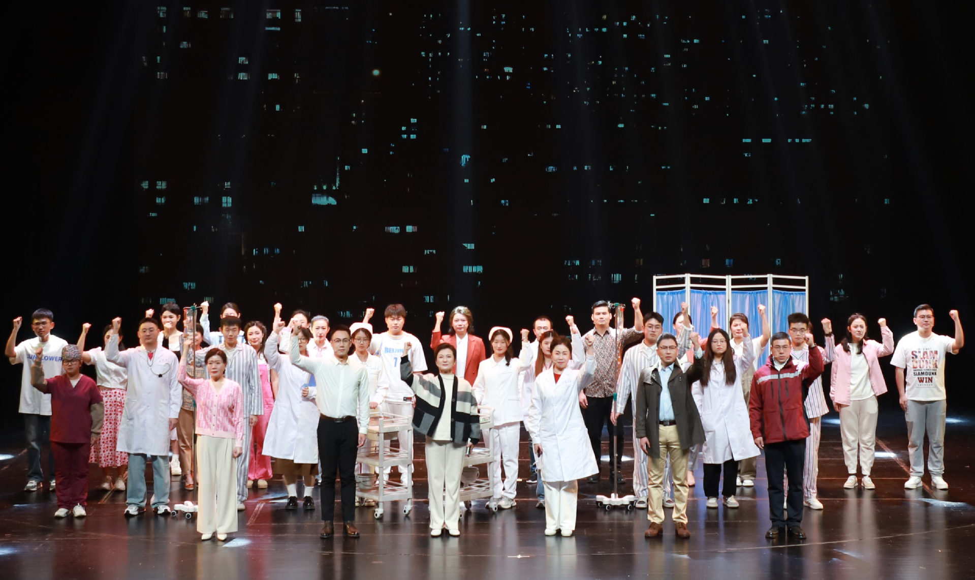 《别无选择》历经三年的精心创作与潜心排练,于2024年元旦作为献礼剧目进行首演,于2024年9月作为入学入校教育面向新生、新职工再演,本次昌邑演出是首次走出校门、对外巡演。昌邑卫健系统员工有的带着老人有的带着孩子,一起来观赏这一部献给医务工作者的话剧,现场座无虚席,气氛热烈,多次响起热烈掌声,许多人被感动得多次流下热泪。演出结束后,演员三次谢幕,观众仍久久不愿离去。