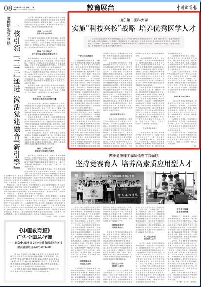 12月31日,《中国教育报》以《实施“科技兴校”战略 培养优秀医学人才》为题,报道beat365加强有组织科研工作主要做法。