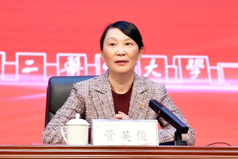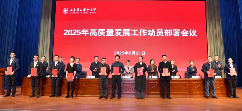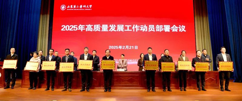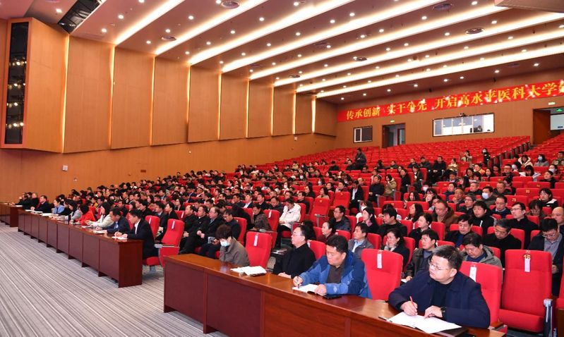 管英俊在讲话中指出,2024年学校成功获批博士学位授予单位,实现了学校办学层次和育人水平的全面提升,具有里程碑意义。她强调,2025年是面向十年建成教育强国、教育强省的全面布局、高位推进之年,是学校“十四五”规划全面收官、“十五五”规划谋篇布局的关键之年,也是学校全面强化博士学位授予单位建设、启航高水平医科大学新征程的奋进之年。为进一步推动学校各项任务高标准起步、高效率推进、高质量落实,要在四个方面做好2025年重点工作任务。一是聚力战略思维引领,激发争先进位的拼劲。要探索形成一体推进教育发展、科技创新、人才培养的制度机制,让学校高质量发展优势更优、特色更特、强项更强。二是聚力改革创新赋能,鼓足攻坚突破的闯劲。要站在新时代的风口去捕捉机会、抢抓机遇,以改革开路、用创新闯关,不断提升全链条创新支撑效能。三是聚力真抓实干作风,保持一抓到底的狠劲。要拿出不达目的绝不罢休的狠劲、韧劲,真正把思路变成决策、把决策变成措施、把措施变成行动、把行动变成成效。四是聚力安全底线保障,坚持久久为功的韧劲。要从总体国家安全观出发,筑牢安全底线,做到肩上有责、心中有数、手中有招。