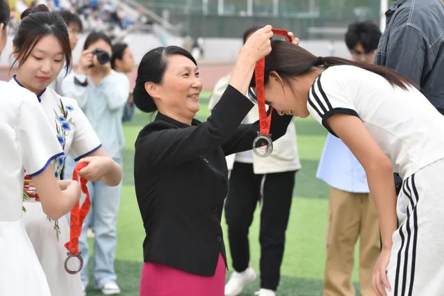 校长管英俊为获奖运动员颁奖