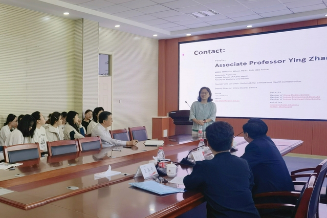 会见后,张颖以《弱势群体气候变化与健康适应性研究》为题,为公共卫生学院师生作学术报告。她详细讲解了气候变化对健康的风险、中国居民对气候变化的认知与适应性、研究转化和政策倡导推动健康战略等,并与公共卫生学院学科、专业负责人就专业建设和学科发展进行了深入交流。
