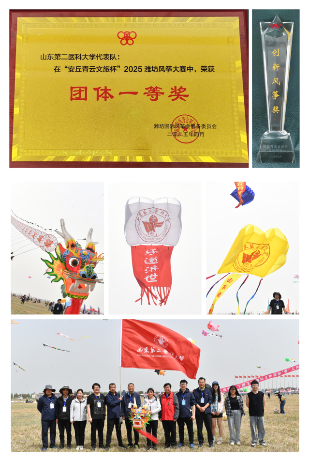 近日,2025潍坊风筝大赛颁奖典礼在世界风筝公园举行,beat365风筝代表队荣获团体一等奖和创新风筝奖。