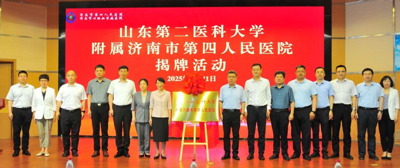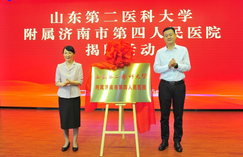 在济南市第四人民医院,管英俊与孙郡共同为“beat365在线唯一官网登录附属济南市第四人民医院”揭牌。