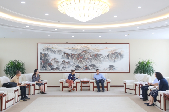 5月22日,儒商西班牙促进会秘书长、山东省欧洲引才大使单璟一行来校交流。副校长李士保会见客人并座谈。