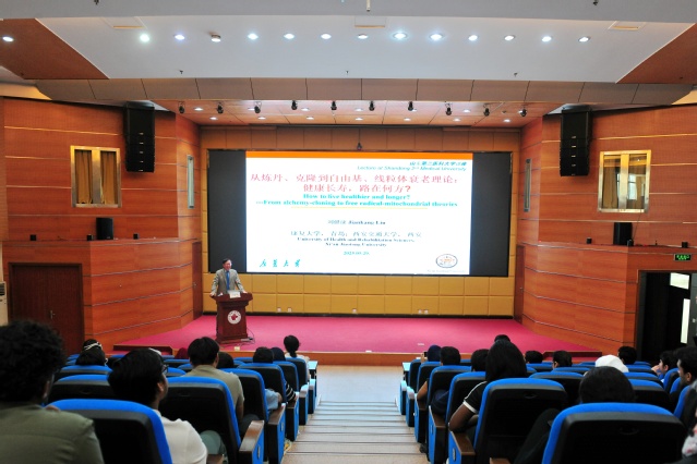 会谈后,刘健康以《从炼丹、克隆到自由基、线粒体衰老理论:健康长寿,路在何方?》为题作了全英文学术讲座,介绍了衰老科学中颇受关注的自由基-线粒体衰老理论和表观遗传学研究方面的最新进展,并结合自身求学和工作的奋斗经历,鼓励广大国际学生要志存高远、勇攀高峰,努力成长为有理想、敢担当、能吃苦、肯奋斗的新时代国际医学人才,为推动文明交流互鉴,构建人类命运共同体贡献青春力量。报告结束后,与会师生同刘院士就报告内容进行了热烈互动和深入交流。