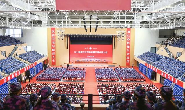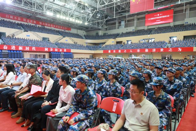 各部门、学院负责人,新生辅导员,2025级新生军训团全体教官和新同学参加大会。