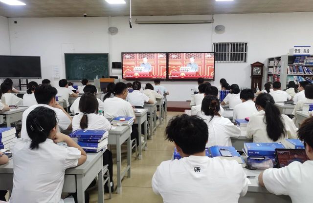 学校组织广大师生通过广播、网络、电视、新媒体等多种渠道,认真收听收看直播。