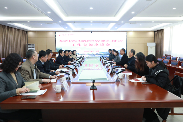 1月16日,潍坊理工学院董事长、校长,马来西亚汝来大学董事长金德禄一行来校交流,学校党委书记张建华会见客人并座谈,副校长李士保参加活动。