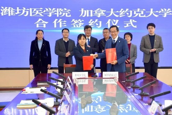 Signing ceremony ofStrategic Cooperation Agreement between Weifang Medical University, China andYork University, Canada and appointment ceremony of Wang Rui as Chief Expertare held at the meeting room on the fourth floor. After the meeting,Wang Rui listened to the report on the progress of the school's academicianteam’s work and exchanged ideas with team members.