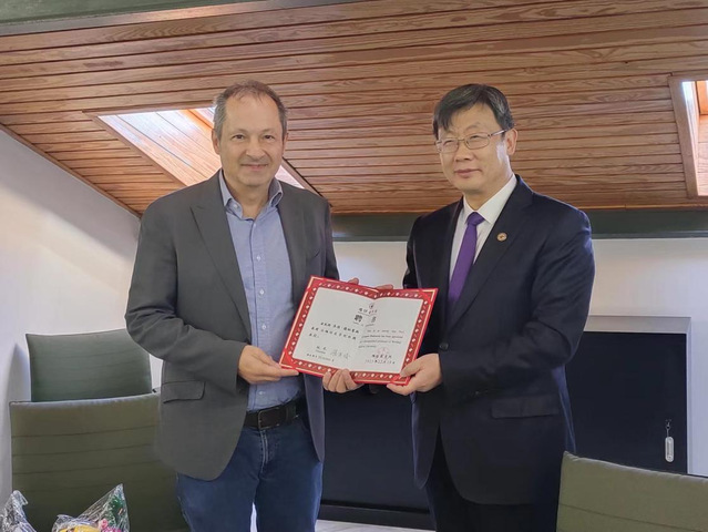 Lai Bo, the minister-counsellor of the Chinese Embassy in Greece met with Secretary Liu Jun and his delegation At Harokopio University of Athens,Greece, the Vice President, Professor George D.V Dedousis, the Dean of the School of Public Health, Professor Manios, and former Dean Demous received our school delegation. The two parties summarized the achievements in international curriculum and teacher training project since the signing of the Sino -Greece Cooperation Agreement in 2022, and expressed their willingness and confidence to continue to strengthen cooperation and development. The two sides reached an agreement on the establishment of China-Greece Medical Cooperation Alliance (Shandong), held the ceremony of our school's overseas talent workstation and the appointment of the specially appointed professors. The Vice President, Professor Dedousis, congratulated our school's renamed Shandong Second Medical University.