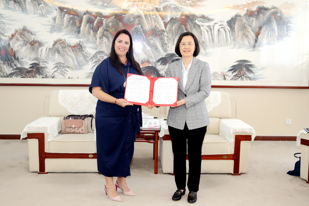 On April 25, the delegation led by Magdemily Fallat Ramos, vice president of the International Affairs of Universidad de Ciencias Médicas de La Habana in Cuba, and Rene Oramas GonzÃlez, vice president of academy, visited our school. Vice President Lu Guohua met with the delegation and had a discussion. Lu Guohua welcomed the delegation, and briefly introduced the school's development history, discipline majors, school-running characteristics, and international cooperation. She pointed out that there is a long-standing and well-established friendship between China and Cube. There are many similarities in the professional fields of clinical medicine, nursing, dental medicine, and public health. She hoped that the two universities could take full advantage of this visit to deepen mutual understanding, exchange views, collaborate with each other and carry out in-depth pragmatic cooperation in student training, teacher-student exchanges, and joint scientific research. Magdemily Fallat Ramos briefly introduced the school development, discipline settings, and scientific research of Universidad de Ciencias Médicas de La Habana. She said that the two universities have a high integrating degree in majors and a broad cooperative prospect. It is expected that the two parties will carry out in-depth and solid cooperation in the future. After in-depth communication, the two sides reached consensus on teachers and students' visits and exchanges, joint training of students, and medical scientific research cooperation, and signed a memorandum of cooperation. The two sides hope to continuously consolidate the foundation of cooperation, enrich the forms of cooperation, and coordinate the promotion of the high-quality development of medical education in the two universities respectively. Relevant persons in charge of the International Cooperation and Exchange Office (International Education College), Development and Planning Office, Office of Educational Administration, Office of Academic Research, School of Clinical Medicine, School of Nursing, and School of Stomatology participated in the meeting. It is reported that Universidad de Ciencias Médicas de La Habana belongs to the Ministry of Health of Cuba. It was founded in 1728 and has more than 25,000 students at school with a full range of educational levels including the cultivation of undergraduates, post graduates and doctoral students.