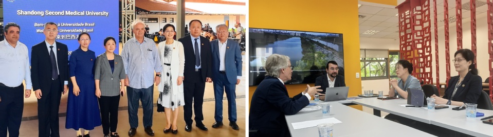 From Nov. 23th to 30th, 2024, a delegation led by Vice President Cheng Min visited University of Medical Sciences of Havana (UCMH), University of Havana, Universidade Brazil, and University of São Paulo (USP). At UCMH in Cuba, the delegation held exchanges with President Marym Delacarida Lago Quiga and Vice President Mademili Farat Ramos.Then they visited School of Medicine, Affiliated Hospital, PharmacologyLaboratory, and Affiliated Hospital of Stomatology. Bothsides reached consensus on talent cultivation, teacher training, scientific research cooperation and academic exchanges, and signed to build a Confucius Institute for TCM. They held the signing ceremony of overseas talent workstation of SDSMU with UCMH in Cuba. At University of Havana, the delegation had exchanges with Vice President Dionisio Zaldivar Silvaon talent cultivation, professional construction, curriculum sharing, joint hosting of international conferences, cultural exchanges and educational cooperation. Later, the delegation visited Confucius Institute atUniversity of Havana. While visiting Universidade Brazil, the delegation discussed with Chairman of the Board Fernando Costa and President Barbara Izabela Costa student exchange, joint training, faculty training, scientific research cooperation and medical resources sharing, etc. and signed an agreement on joint training of international students. Afterwards, VicePresident Cheng delivered a speech on behalf of SDSMU in the activities to promote educational equity, lay the cornerstone of the student residence, and plant trees to practice global sustainable development, etc. at the FernandoPolis Campus. The delegation visited the Virtual Simulation Center for Clinical Skills, laboratories, libraries, classrooms, clinics, the Zoonotic Infectious DiseaseCenter, and a teaching hospital under construction. On the basis of the cooperation agreement signed previously, both sides promised the implementation of types of cooperation projects and the high-quality development of mutual medical education. At Universityof São Paulo, the delegation had an in-depth exchange with Aluisio Augusto Cotrim Segurado, Provost of USP and Director of the Hospital of Infectious Diseases, and Rogelio Norfrega, Director of the Office of International Cooperation, on long and short-term student visits, faculty exchanges and international programs. Then they visited the Hospital of USP. It is of great significance for thevisit to strengthen cooperation between SDSMU and universities in Cuba andBrazil and broaden international exchanges for teachers and students. Running schools in an open manner, SDSMU will explore new modes of international cooperation and expand international cooperation in academic, education andresearch.