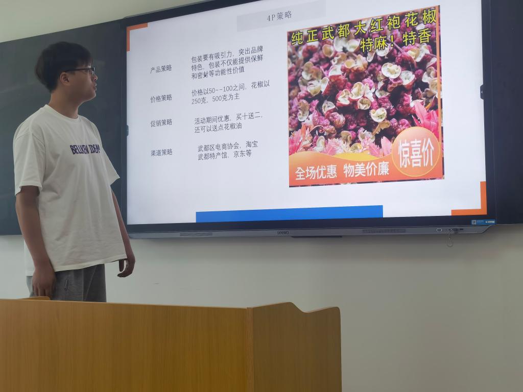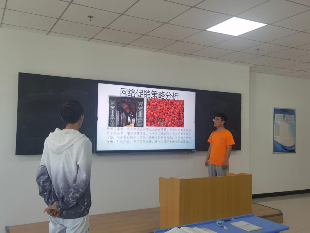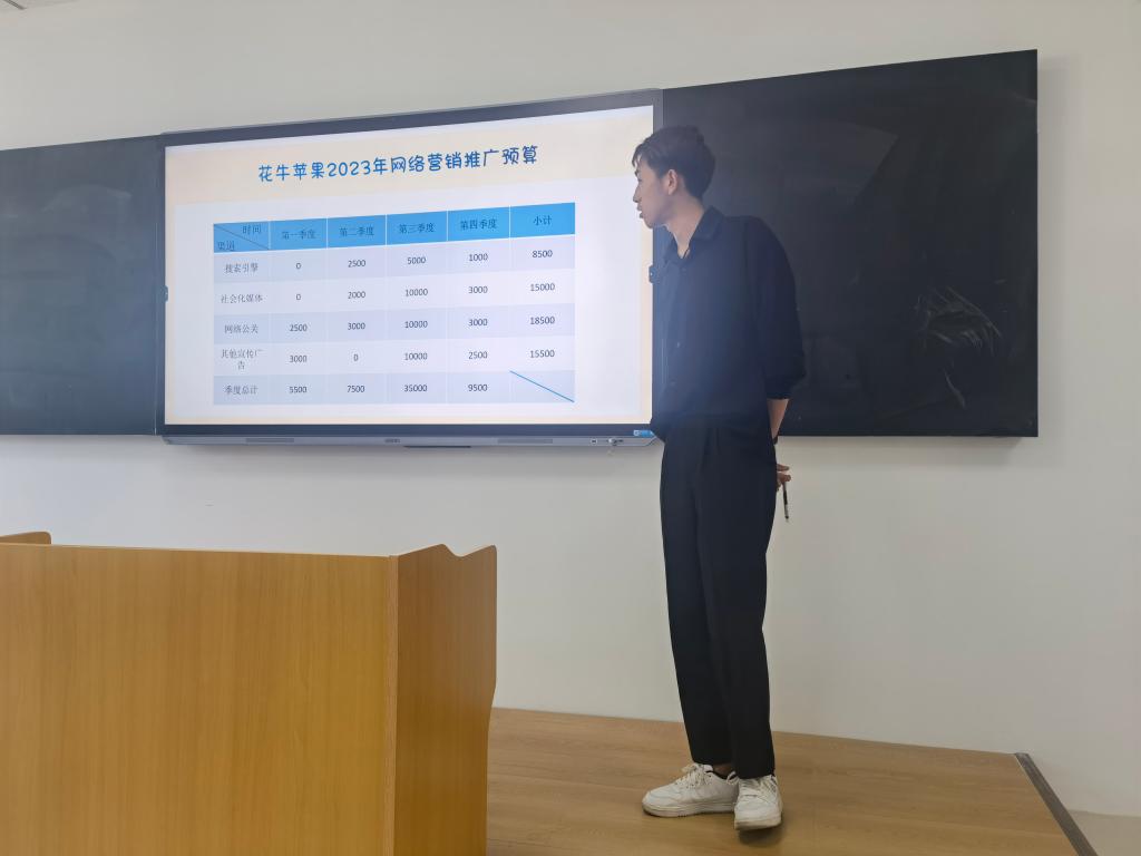 本学期JG2071班《网络营销》课程在授课过程中将原有课程体系分为模拟公司组建、网络营销初识、网上门店建设、电子邮件营销、微博营销、博客营销、论坛营销、搜索引擎营销、网络广告营销九个单一模块,在学期中分阶段分模块对学生进行了单项技能的考核,期末通过模块十网络营销策划书的撰写与展示,对学生完成网络营销各种工具及方法学习后进行综合考核,以总结交流、策划、展示等形式,让学生灵活运用各种网络营销工具进行企业营销策划;自己设计、策划企业的网络营销推广方案,充分发挥学生的主动性和创造力,对学生运用各种网络营销工具解决实际问题的综合能力、创新精神和实践能力进行考核。6月30日上午,在1-A602教室进行了模块十综合考核的汇报展示,学生们以小组为单位进行了网络营销方案的展示和交流,“靖远枸杞”、“花牛苹果”、“武都花椒”等产品的网络营销策划展示反映出学生们关注地方经济发展,希望通过自己所学助力家乡经济建设的信心和决心,展示活动取得良好效果。