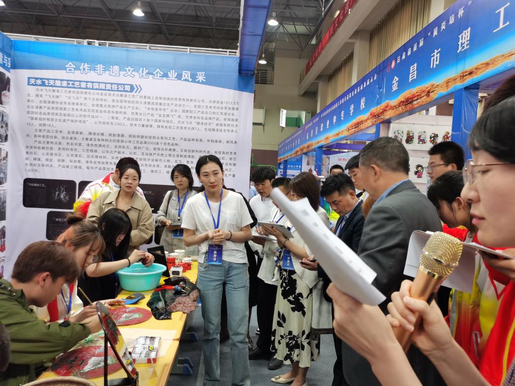 5月14日至18日,首届甘肃省“黄炎培杯”中华职业教育非遗创新大赛暨非遗职业教育成果展示会在酒泉职业技术学院举办。本次大赛由中共甘肃省委统战部指导,甘肃中华职业教育社、省教育厅、省人力资源和社会保障厅联合主办,酒泉职业技术学院、省非遗职业教育集团承办,来自全省42所职业院校的138个项目团队进行了为期2天的精彩展示和激烈角逐。