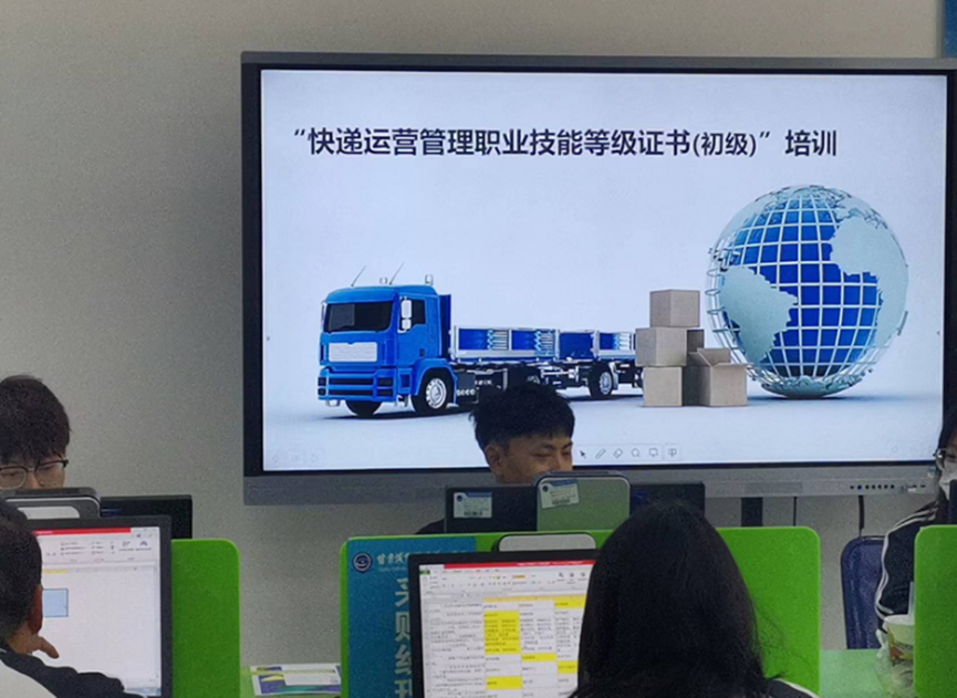 5月18日,太阳成集团官方网站30名物流管理专业学生在太阳成集团官方网站商科实训室参加“快递运营职业技能登记证书(初级)”培训会。
