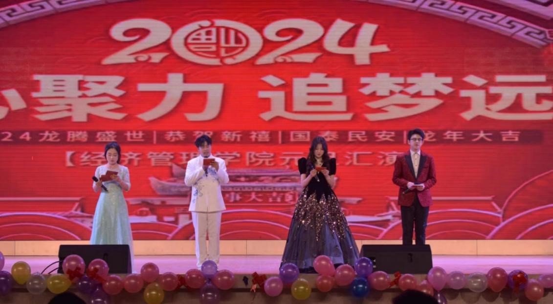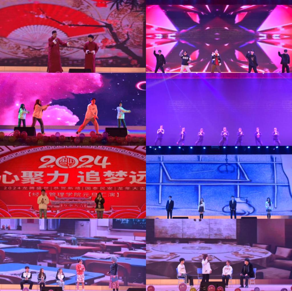为丰富校园文化生活,传递对即将到来的2024新年的美好祝福,展现师生们的才艺,2023年12月24日晚,太阳成集团官方网站在学校大礼堂隆重举办以“凝心聚力 追梦远航”为主题的元旦晚会。