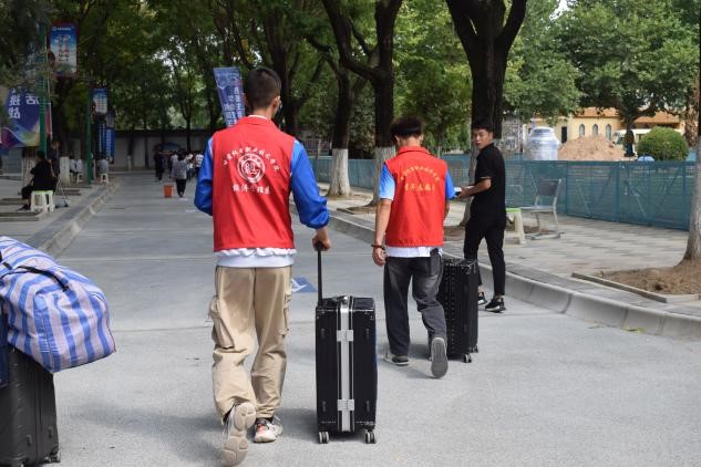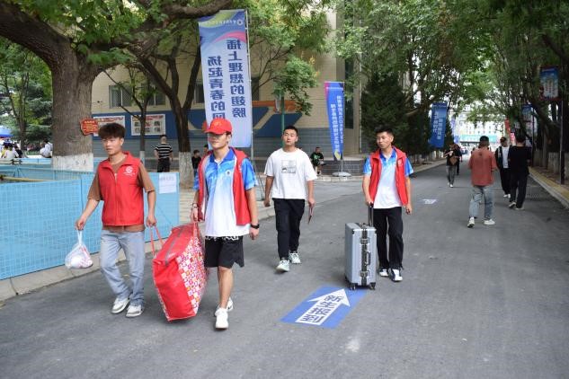 在父母亲友的叮嘱声中,同学们即将开始全新的生活,满怀期待踏入梦想的殿堂,开启人生新篇章。温馨的迎新标语,清晰的地图指引,显眼的横幅标识,为大家指引着校园的方向。热心的志愿者们,秩序维护、校内指引、搬运行李,忙前忙后答疑解惑,是校园里一道道靓丽的风景。