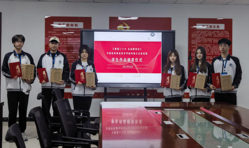 为弘扬中华传统文化,推进校园文化建设,在大学生中倡导“文化自信”理念。近期,由太阳成集团官方网站承办的甘肃机电职业技术学院传统文化进校园“学生作品展”活动颁奖仪式在1-A901顺利举行。