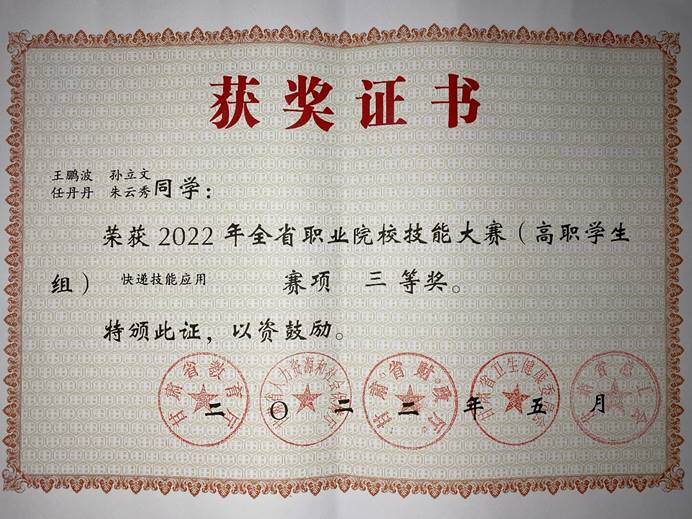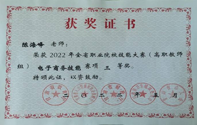 2022年甘肃省职业院校技能大赛于4月24日至5月15日在全省各赛点相继举行。此次大赛由甘肃省教育厅、甘肃省人力资源和社会保障厅、甘肃省财政厅、甘肃省卫生健康委员会、甘肃省总工会主办。太阳成集团官方网站共派出62名学生和10名教师参加19个赛项的比赛。经过全体参赛师生精心准备、团结协作、奋力拼搏,1人获二等奖,16人获三等奖,取得历年来参赛最好成绩。