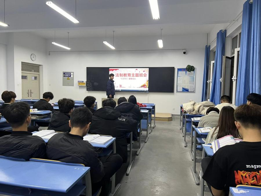 在主题班会中,各班结合学生实际情况,充分利用课件、视频、图片等多种资料,以真实案例分享、法律知识竞赛等多种形式,结合典型案例以及发生在身边的违纪现象,以案释法,以法论事,深入浅出地告诉同学们在日常生活中应该做什么,不应该做什么,引导学生要不断学法、守法、用法,增强法制观念。