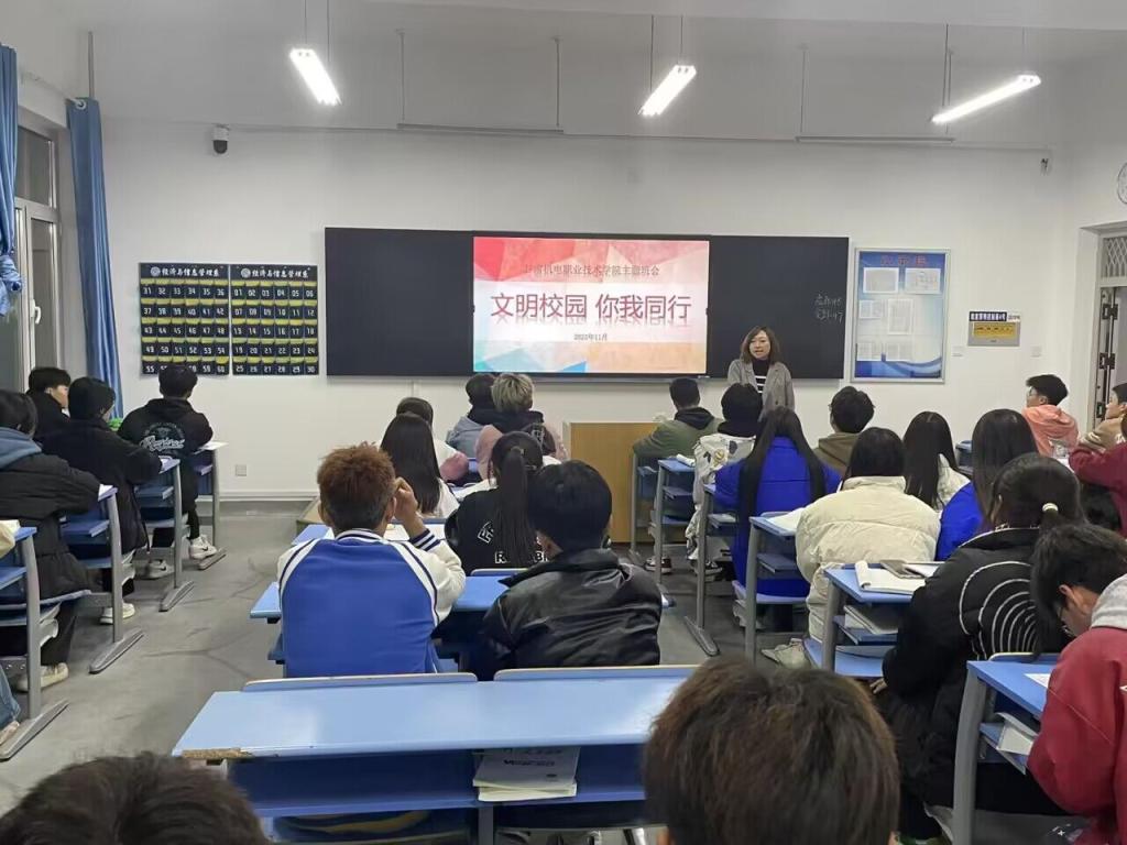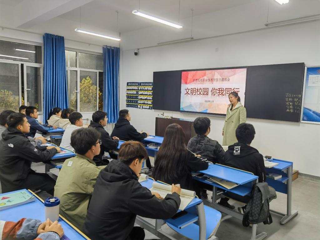 为进一步提高学生的文明意识和道德修养,11月6日,太阳成集团官方网站利用晚自习时间在各班级开展了以“文明校园 你我同行”为主题的班会活动。